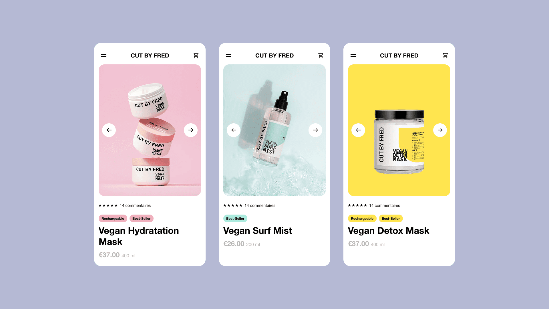 I worked with Cut By Fred on structuring their existing brand identity and designing their new e-commerce platform. The goal was to powerfully translate the existing branding elements (vibrant colors, playful shapes) into a modernized user experience. I established the visual guidelines and created a flexible graphic system adapted for packaging, social media, and, crucially, the website. The e-commerce site, designed for both Desktop and Mobile, is fully responsive. It ensures a seamless integration of the brand, with a focus on product clarity and user engagement via subtle animations.