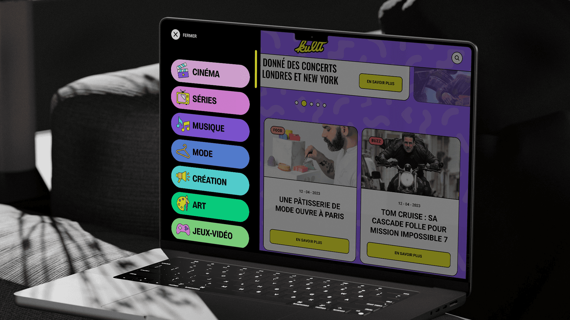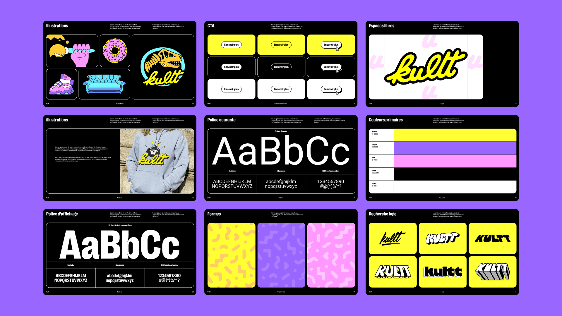 Kultt is an online platform dedicated to audio and video media, spotlighting everything that is or has become cult. I created Kultt’s brand identity from the ground up, aiming to reinvent online media with a focus on fun, simplicity, and user-friendliness. The result is a vibrant and welcoming identity that encourages users to explore content they love, with a fresh, dynamic color palette that conveys energy and vitality.